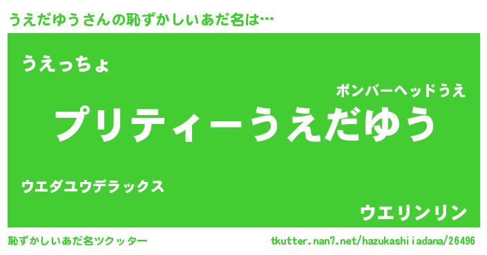 | 胡散臭い通販商品みたいなあだ名 | 『モテモテ間違いなし水晶球…その名も「うえだゆう」』 |