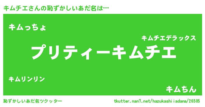 | 意味不明あだ名 | 『ペロリンキムチエ』『永久保存キムチエ』 |