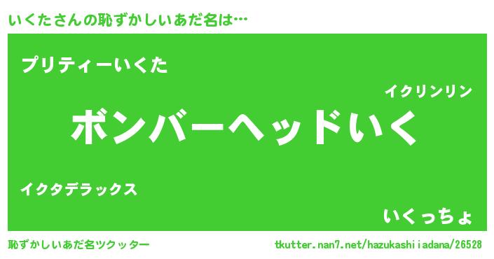 | ヘコむあだ名 | 『いくにゅー』『豆乳』『いくお』 |