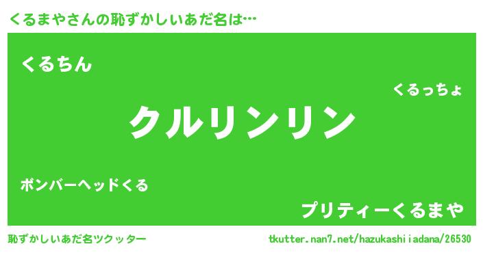 | ヘコむあだ名 | 『くるぷりん』『くるまや(苦笑)』 |