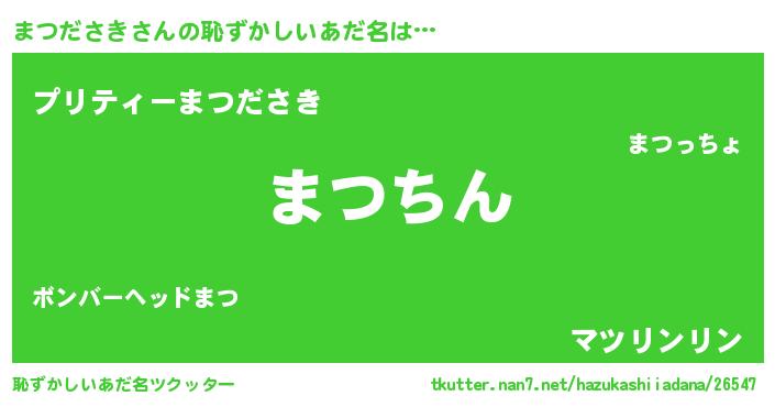 | 意味不明あだ名 | 『住所不定無職まつださき(89歳)』 |