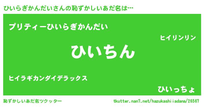 | ヘコむあだ名 | 『ひいらぎかんだい(苦笑)』『ひいふぇ~』 |