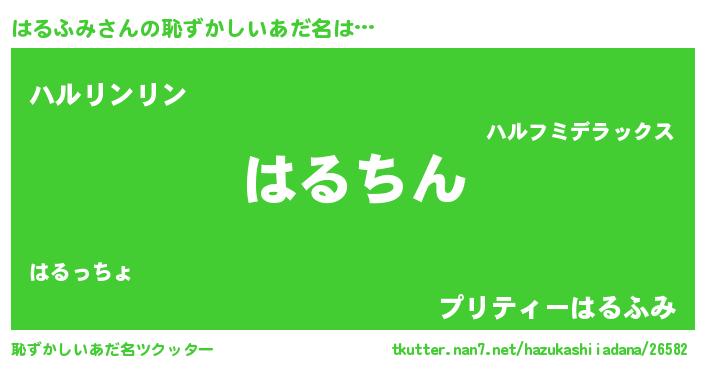 | 男性向けラノベタイトル風あだ名 | 『この素晴らしい世界にはるふみを!』 |
