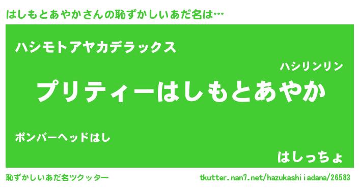 | 意味不明あだ名 | 『住所不定無職はしもとあやか(81歳)』 |