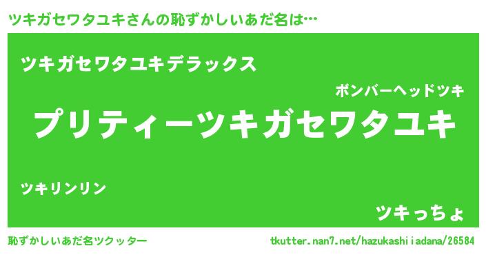 | 男性向けラノベタイトル風あだ名 | 『ツキガセワタユキアートオンライン』 |