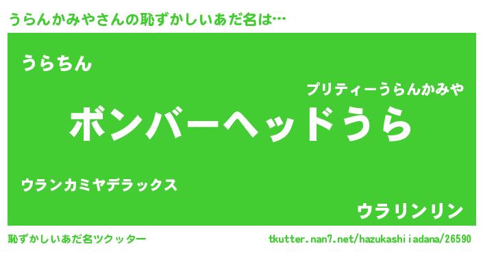 | ヘコむあだ名 | 『うらんかみや(笑)』『うらっぺ』 |