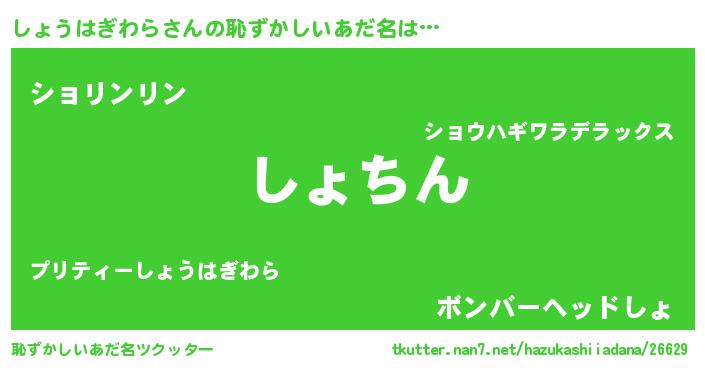 | 意味不明あだ名 | 『永久保存しょうはぎわら』 |