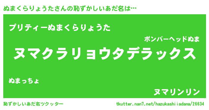 | 意味不明あだ名 | 『住所不定無職ぬまくらりょうた(14歳)』 |