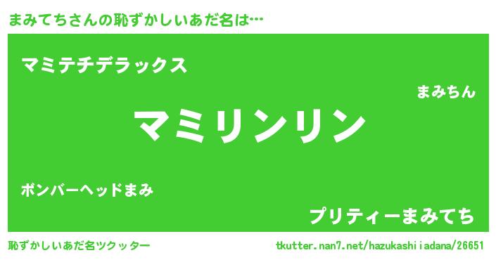 | ポケモン風あだ名 | 『ヒマミテチ』『マミゴンZ』 |
