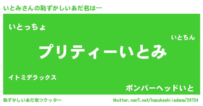 | ヘコむあだ名 | 『いとにゅー』『豆乳』『いとみ(笑)』 |