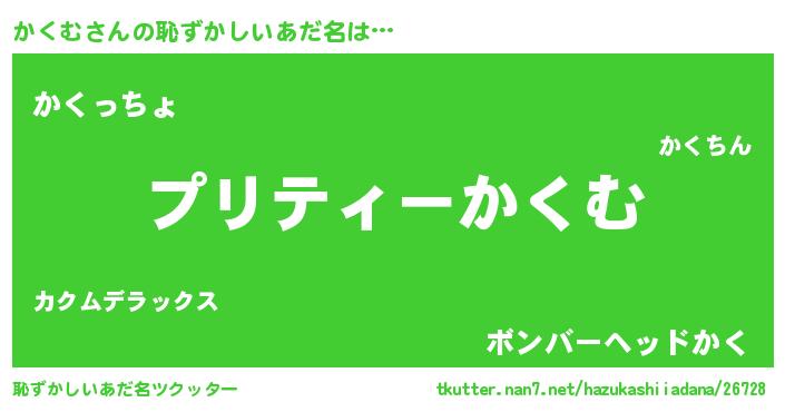 | ヒーロー風カッコイイあだ名 | 『スーパーカクム』『ウルトラかくむマン』 |