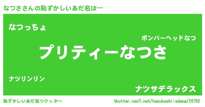 | ヘコむあだ名 | 『なつにゅー』『なまこ酢』 |