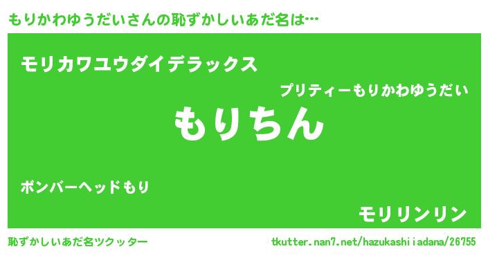 | 意味不明あだ名 | 『永久保存もりかわゆうだい』 |
