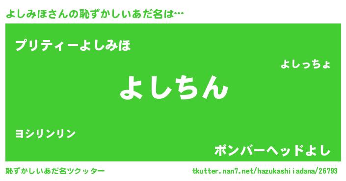 | ヘコむあだ名 | 『よしみほ(小並感)』『よしにー』 |