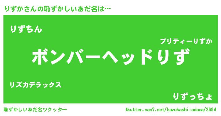 | 意味不明あだ名 | 『眠気覚ましガムりずか味』 |