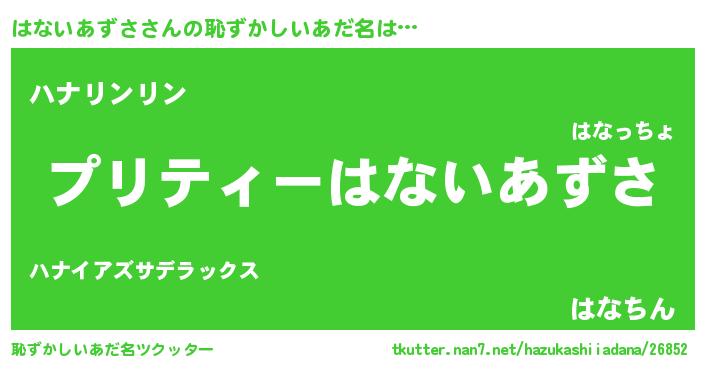 | ヒーロー風カッコイイあだ名 | 『スーパーハナイアズサ』『銀牙騎士ハナ』 |