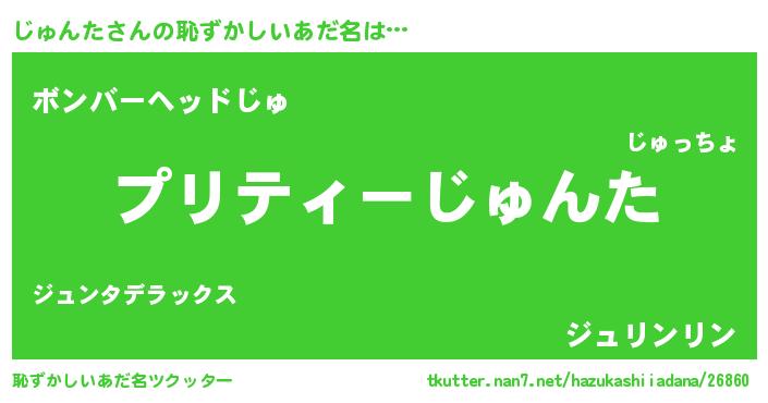 | 男性向けラノベタイトル風あだ名 | 『ジュンタアートオンライン』 |