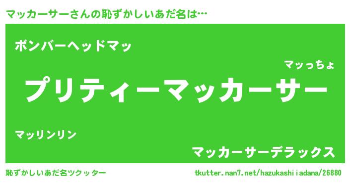 | 男性向けラノベタイトル風あだ名 | 『マッカーサー~年齢イコール彼女いない歴の魔法使い~』 |