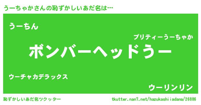 | ヘコむあだ名 | 『うーちゃか(笑)』『うーぷりん』 |