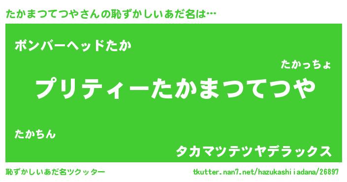 | 男性向けラノベタイトル風あだ名 | 『タカマツテツヤスレイヤー』 |