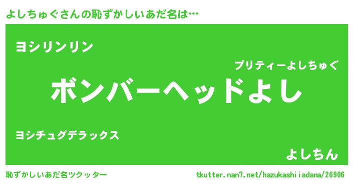 | 欧米人風あだ名 | 『よしちゅぐ・ステッグマイヤー』 |