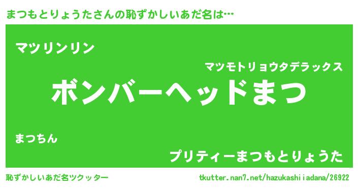 | 男性向けラノベタイトル風あだ名 | 『ノーゲーム・ノーマツモトリョウタ』 |
