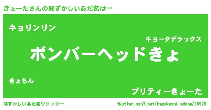| ヒーロー風カッコイイあだ名 | 『仮面キョダー』『慈愛の使者きょーた』 |