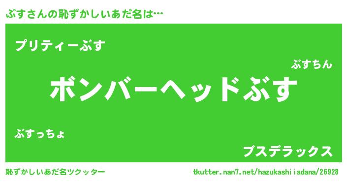 | ヒーロー風カッコイイあだ名 | 『天空の使者ぶす』『スーパーブス』 |