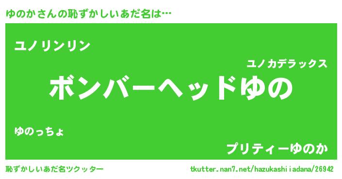 | 欧米人風あだ名 | 『アンジェラ・ゆのか』『ダニエルゆのか』 |