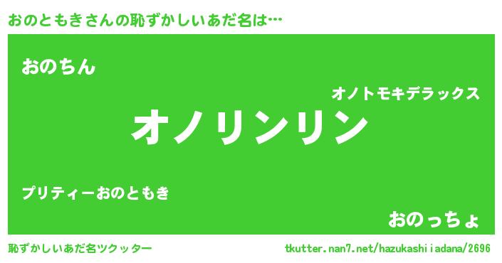| 男性向けラノベタイトル風あだ名 | 『おのともきの嫁は女の子じゃないと思った?』 |