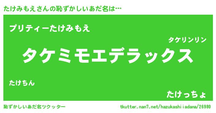| 意味不明あだ名 | 『自称たけみもえ』『ペロリンたけみもえ』 |