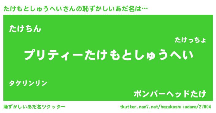 | ヘコむあだ名 | 『たけもー』『たけもとしゅうへい(震え声)』 |