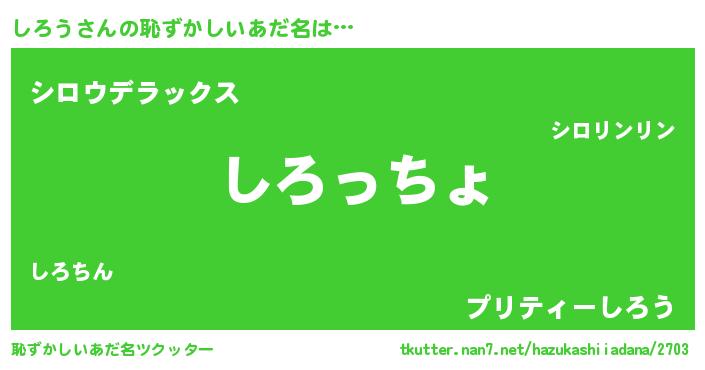 | ヒーロー風カッコイイあだ名 | 『仮面シロダー』『ウルトラしろうマン』 |