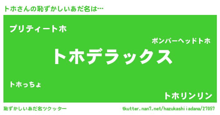 | ヒーロー風カッコイイあだ名 | 『超時空戦士トホ』『スーパートホ』 |
