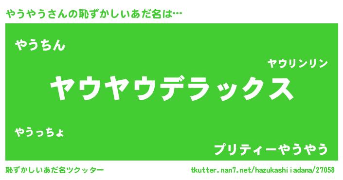| 意味不明あだ名 | 『自称やうやう』『永久保存やうやう』 |