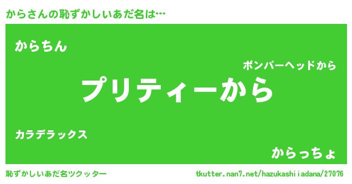 | 男性向けラノベタイトル風あだ名 | 『からの憂鬱』『緋弾のカラ』 |