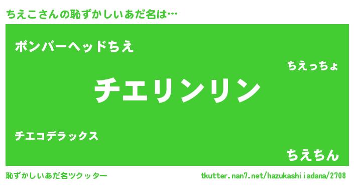 | ヘコむあだ名 | 『ちえお』『ちえこ(笑)』『酢こんぶ』 |