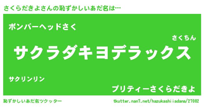 | 女子向けラノベタイトル風あだ名 | 『闇のさくらだきよ』 |