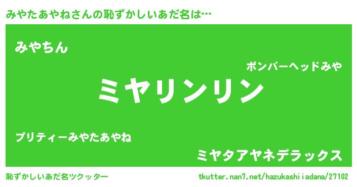 | ヘコむあだ名 | 『みやを』『みやたあやね(震え声)』 |