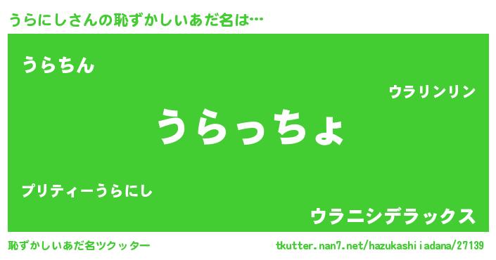 | ヒーロー風カッコイイあだ名 | 『仮面ウラダー』『ウルトラうらにしマン』 |