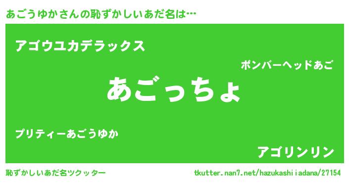 | 意味不明あだ名 | 『あごうゆかフォーエバー』 |