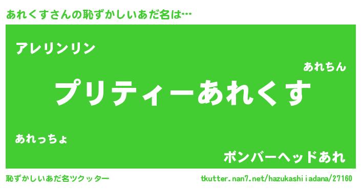| ヒーロー風カッコイイあだ名 | 『スーパーアレクス』『幻影騎士アレ』 |