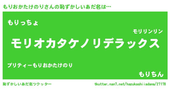 | 意味不明あだ名 | 『自称もりおかたけのり』 |