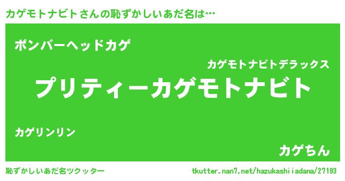 | 男性向けラノベタイトル風あだ名 | 『はたらくカゲモトナビトさま!』 |