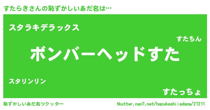| 欧米人風あだ名 | 『すたらき・ステッグマイヤー』 |