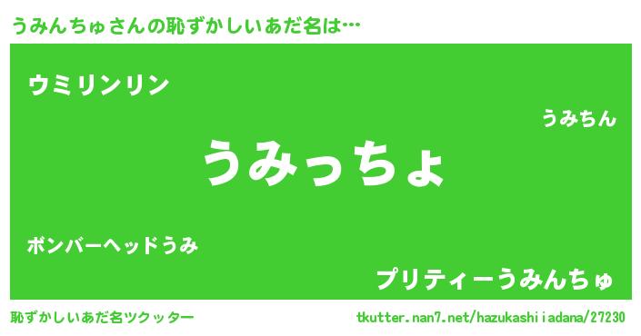 | ヘコむあだ名 | 『つくし』『うみっ子』『うみもー』 |