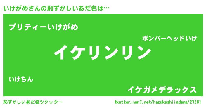 | ポケモン風あだ名 | 『ヒイケガメ』『イケチュウ』 |