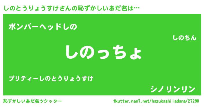 | 男性向けラノベタイトル風あだ名 | 『やはりしのとうりょうすけの青春ラブコメはまちがっている 』 |