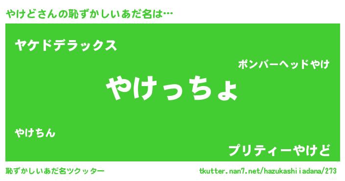 | ヘコむあだ名 | 『牛乳』『やけっふぃ~』『やけっ子』 |