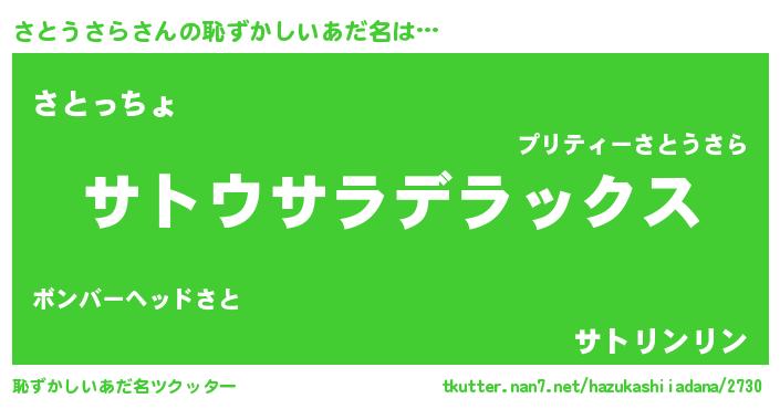 | ヒーロー風カッコイイあだ名 | 『究極戦士サトウサラ』『炎刃騎士サト』 |